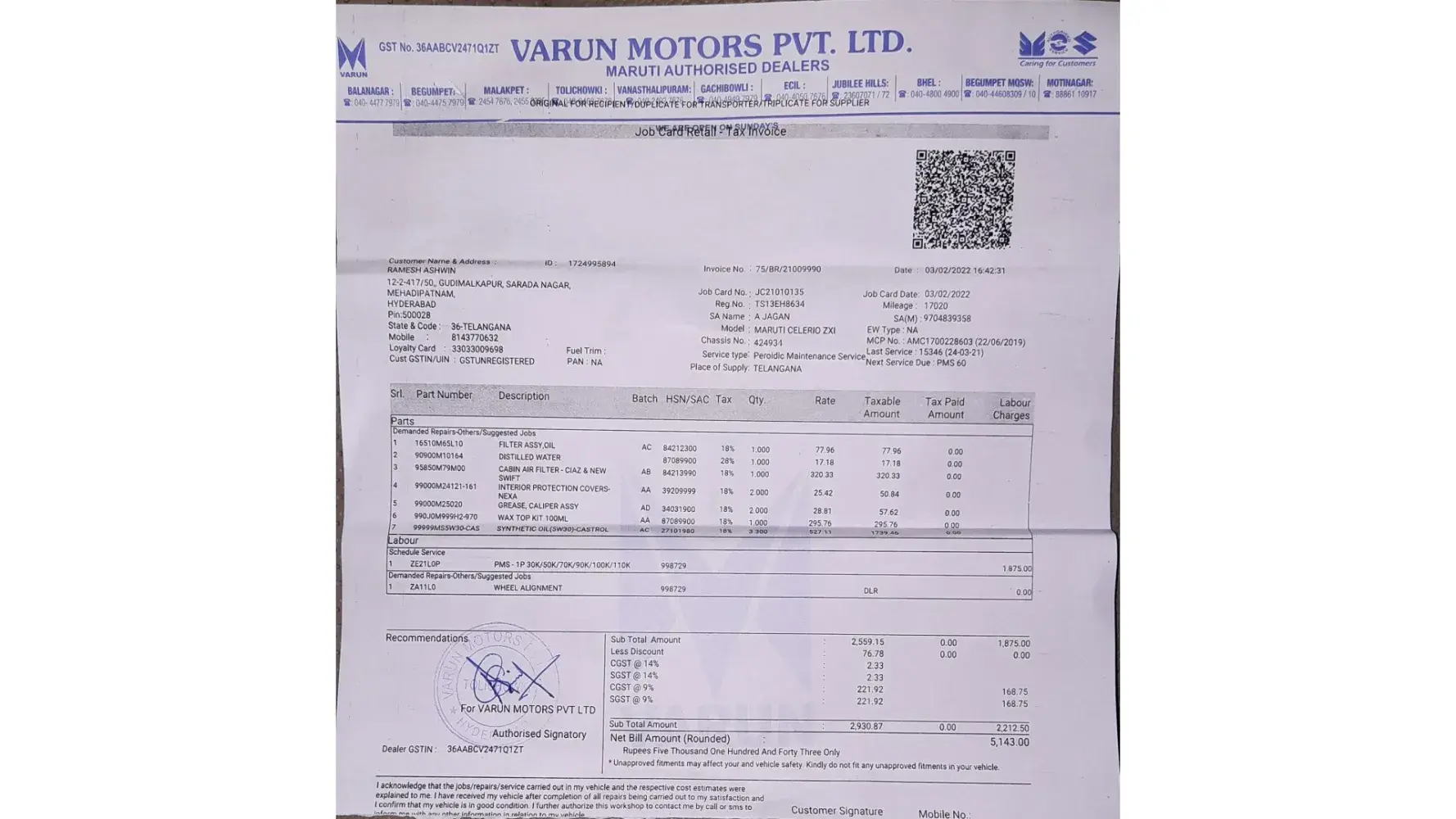 I got my Celerio Vehicle Serviced today 03-Feb-2022. In that , they have unncessarily included charges for Interior Protection Covers and for Wax Top Kit.