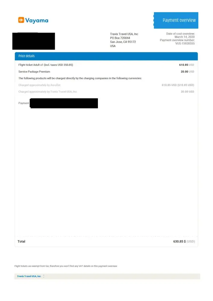- Tried calling Vayama to start process to get refund - got voicemail saying they won't answer phone calls.