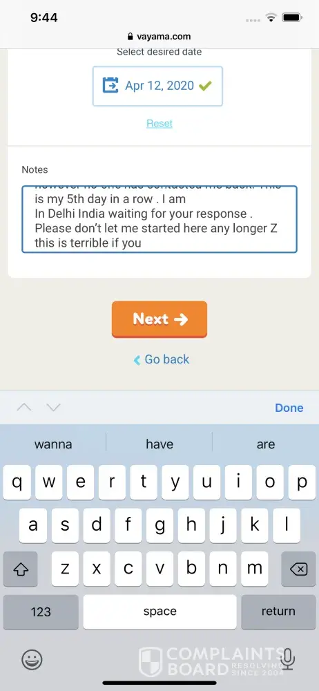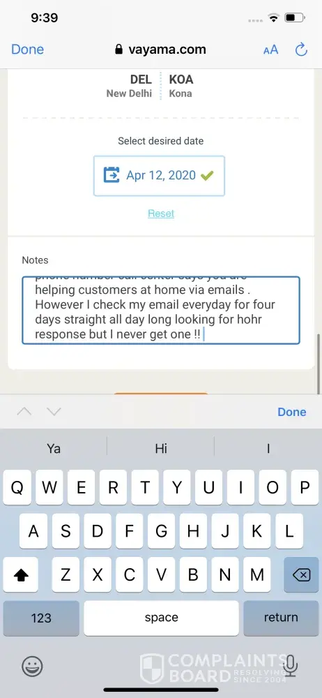 Hi, I tried contacting Vayama 37 times with only one response (finally) but after that response there was never a reply. So after 40 tries n my part to get a refund or Evan have someone talk to me, I am forming a complaint.