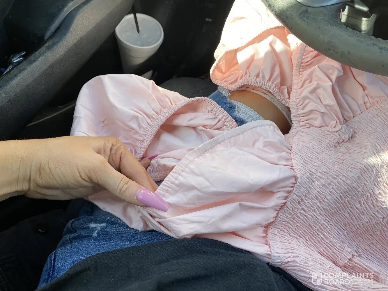the Shirt I ordered was adorable however, before I even got to wear it out I noticed that the elastic band in one of the cups to keep it tight and ruched must have snapped. It would stick out and have no way of holding my breast in. Literally exposed. The top was cute and fabric was good. I'm not sure if it came messed up or not because I waited a month or so before I actually wore it. My other top was very cute and problemless though
