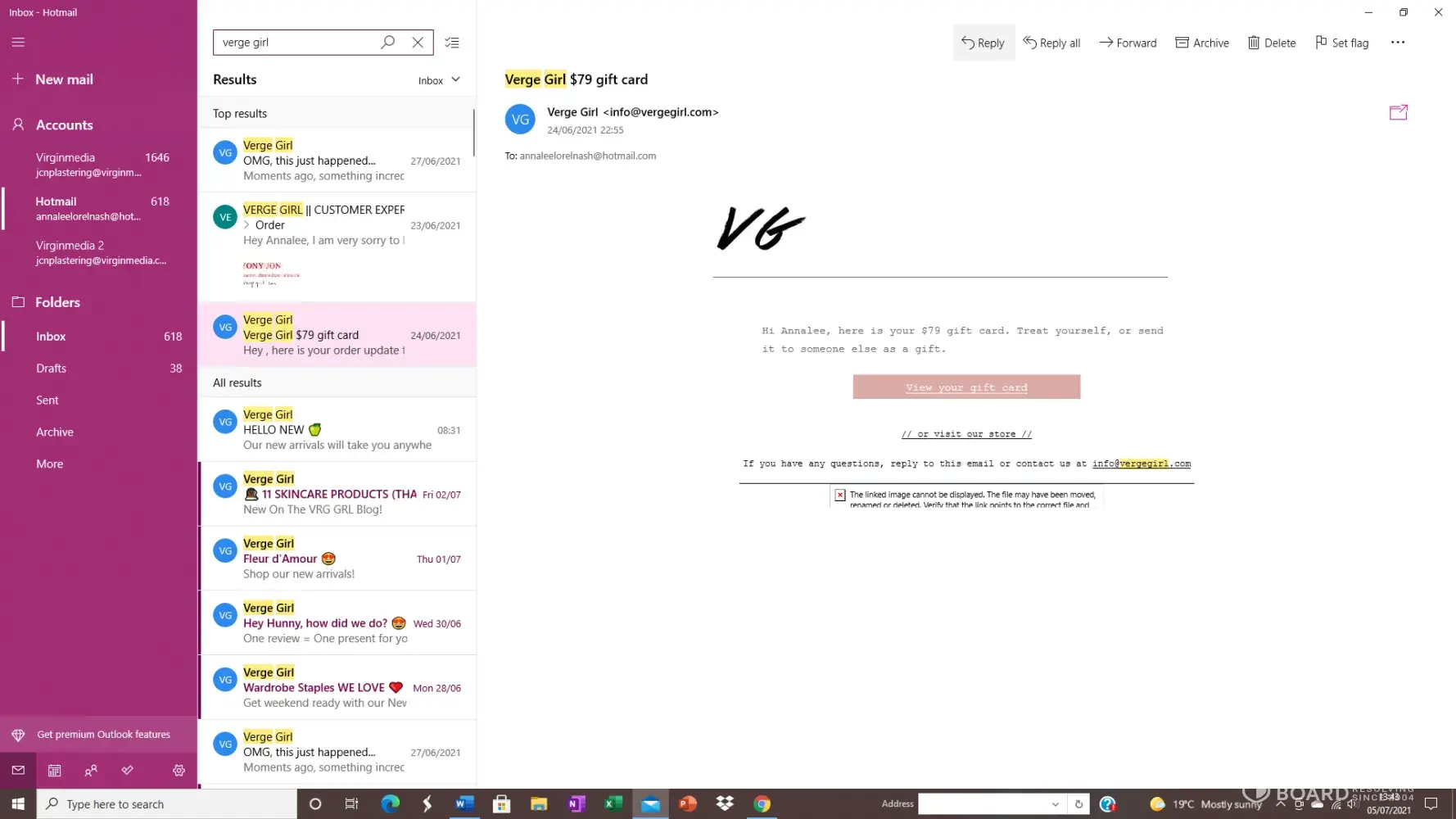 I used the gift card and waited for my tracking email to come through, which after a week it did not, I then contacted verge girl who told me in order for the item I ordered on the gift card to be sent over, I would need to provide more proof of the dress being stained, Yet I did provide photos, and was issued a gift card, only for them to tell me I would need to send more proof to have the order sent out. RIDICULOUS RIGHT?