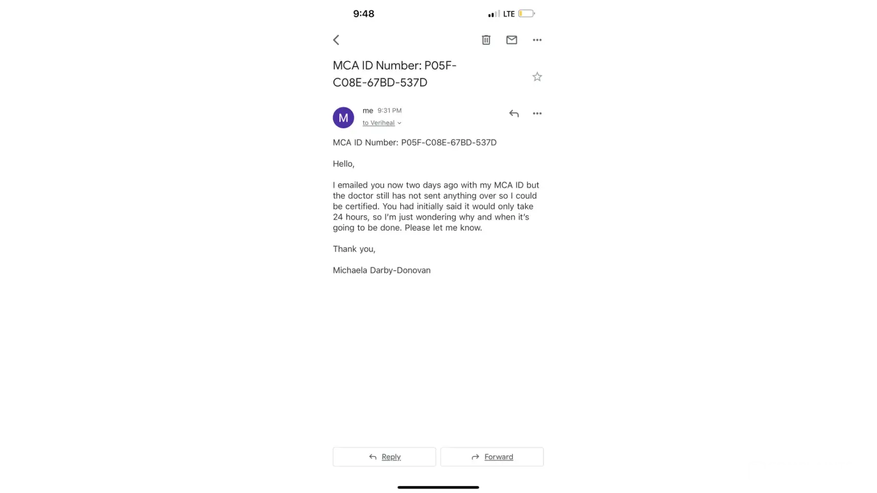 Sent MCA ID to you via e-mail days ago, received an initial email back but since then the doctor nor you have responded or reached out to let me know why I haven’t been certified yet. Doctor hasn’t sent over my recommendation, meaning I can’t purchase any cannabis or obtain my card.