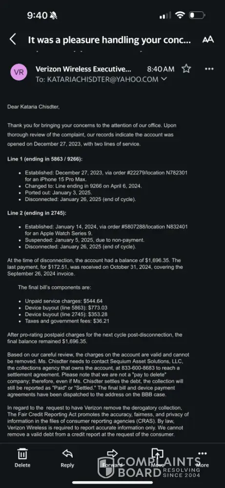 Read full complaintVerizon complaints: history and resolution overview