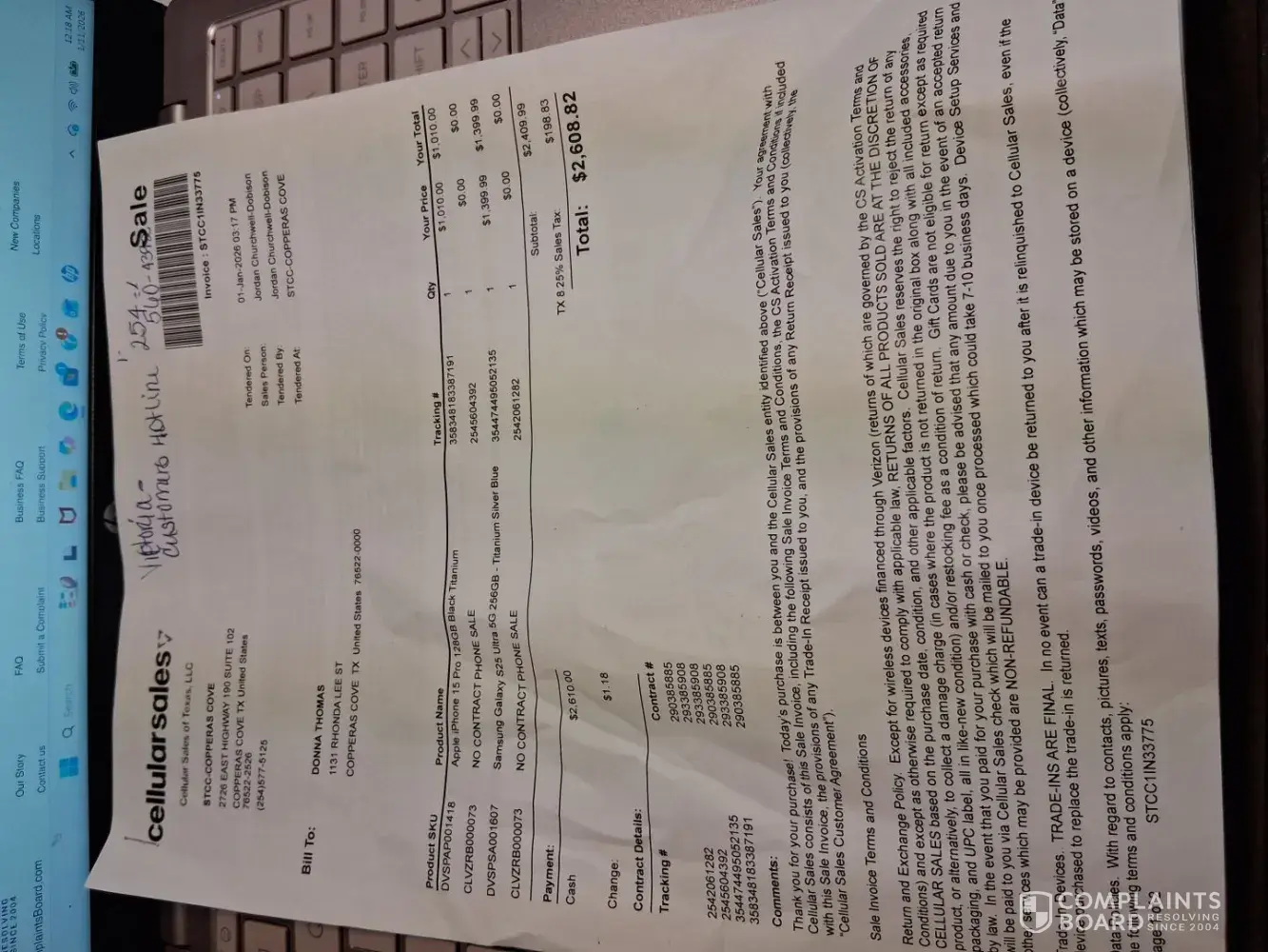 My name is donna thomas on january 1,2026 I purchased in full 2 brand new cell phone the amount was 2,608.82 the rep at the store was named jordan churchhill and I paid off my account which was 478.00 in full, mr. Churchill informed me that I could not get any credit for the 2 cell phones, I am like "what" so I wanted the iphone 15promax mr. Jordan said he...