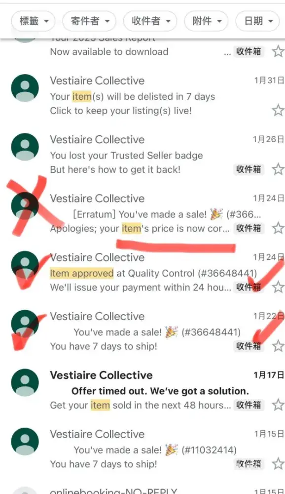 Furthermore, I would like to address another inquiry that has been overlooked. I am curious as to how an item of the same model but in a different color, which I recently sold, passed the inspection without requesting an invoice from me. This raises concerns regarding the consistency and integrity of Vestiare's authentication process.