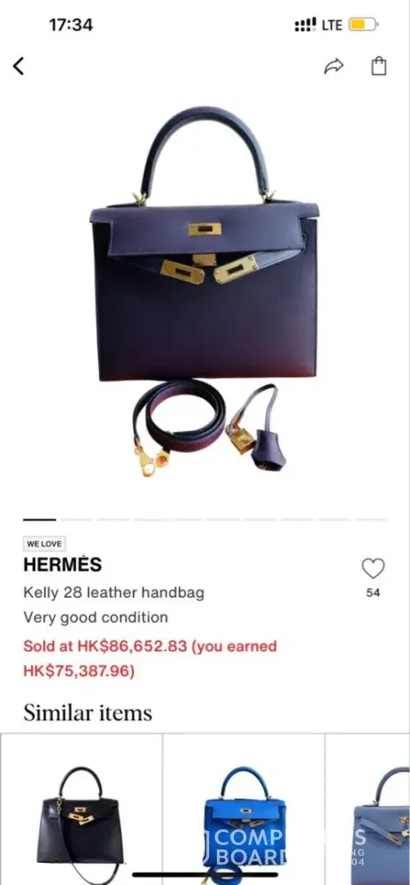 On 21 Jan 2024, I received the email said the my Hermes bag was bought at HKD 113,110 (after commission is HKD 98,310)