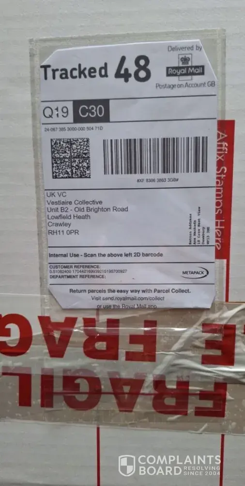 I sent an item on a prepaid delivery note with Royal Mail tracking number XF838638633GB, usually as soon as the item is sent it’s updated as shipped on the sale made but on this occasion it didn’t show as shipped. I contacted customer service online and they asked me to check back in 48 hours in the mean time on 9th February the item showed as delivered to Vestiare at the Uk site in Crawley but still nothing updated. Since I have been in contact with customer service and they are not providing an update, I am very concerned as I sent this item that I’m expecting £290 for but on the system it shows as I haven’t shipped and it states if not shipped by the 13th the order will be cancelled. Vestiare are not processing any explanation and now have said I didn’t send on the prepaid shipping note provided and that’s why it’s taking a while to update. However that is not the case I have provided a receipt to show I used their prepaid shipping note.
