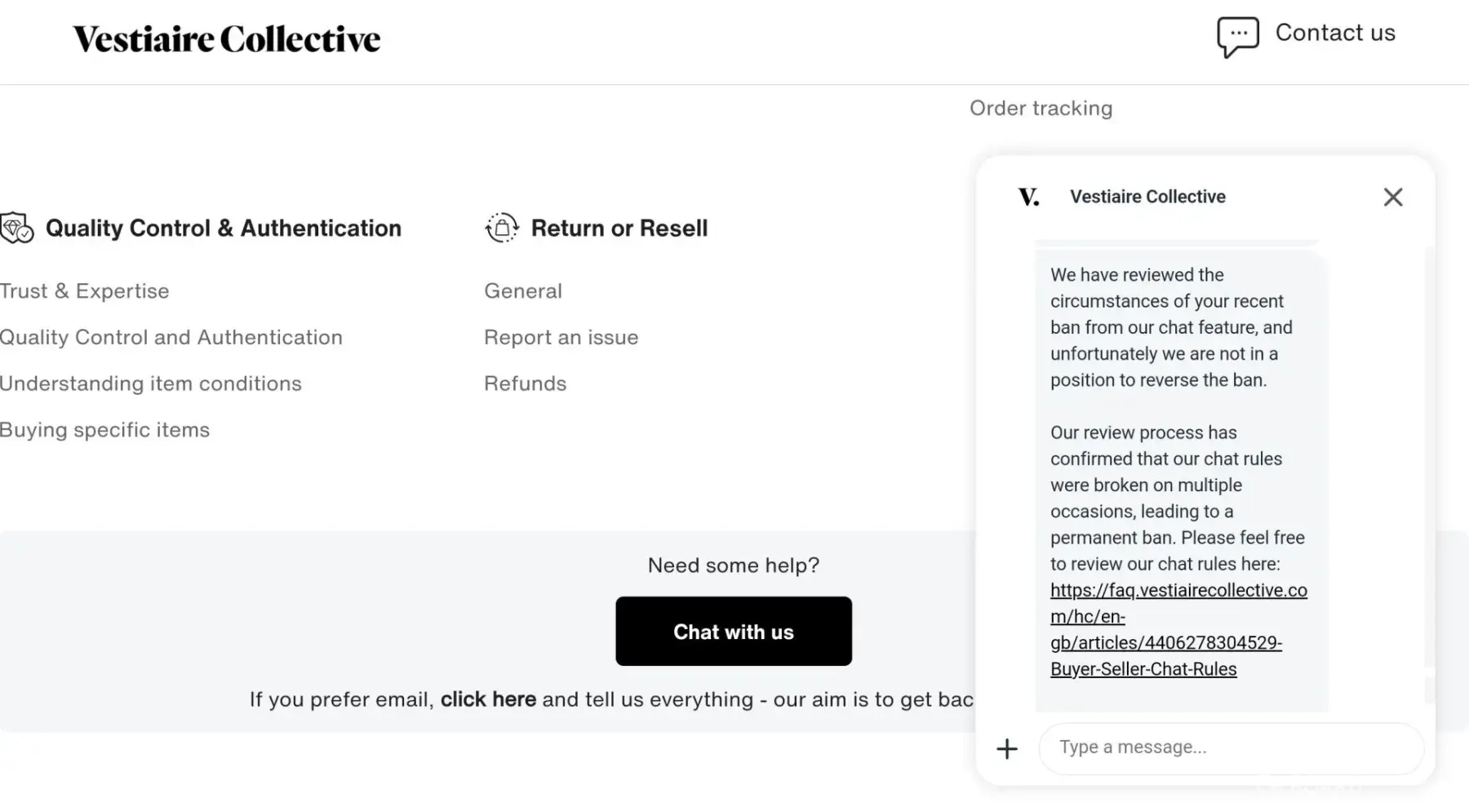 It is impossible to email Vestiaire- emails get returned