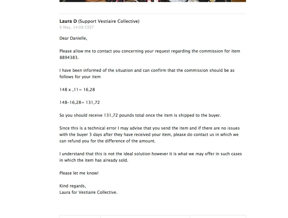 This is an error on the part of Vestaire Collective and making me pay for their error is completely FOUL! Why do I have to pay for the oversight of the website? I don't believe these problems still happen in 2018. I have been trying to find if there is a regulator who they can be reported to. This is wrong!