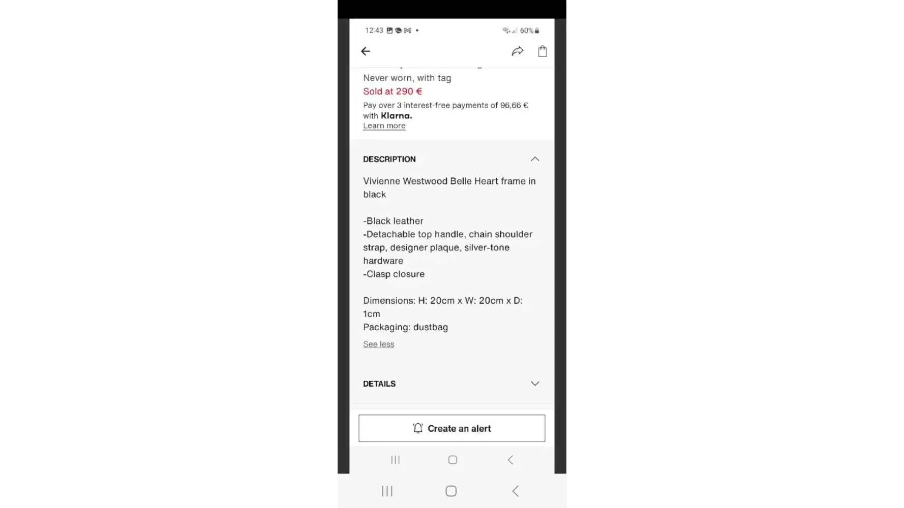 I bought a vivianne westwood bag, in the description they said it was leather but its vegan so I want to return it and get a refund VS said it matching the description and they want me to sell the item myself. But I want my money back. In the description VS made to sell the back the then mention it was vegan, but I have the description of the bag when I bought it.