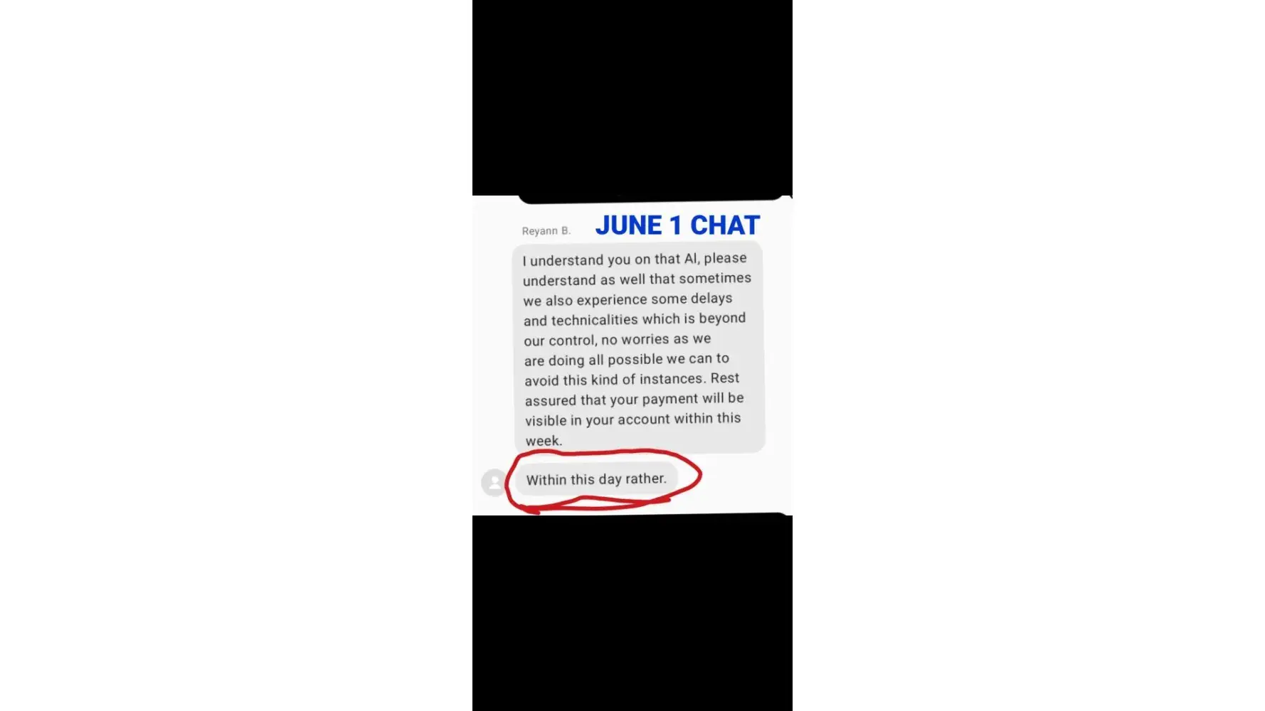 Desired outcome: To find the payment and leave me alone