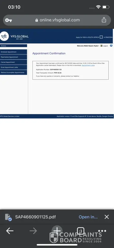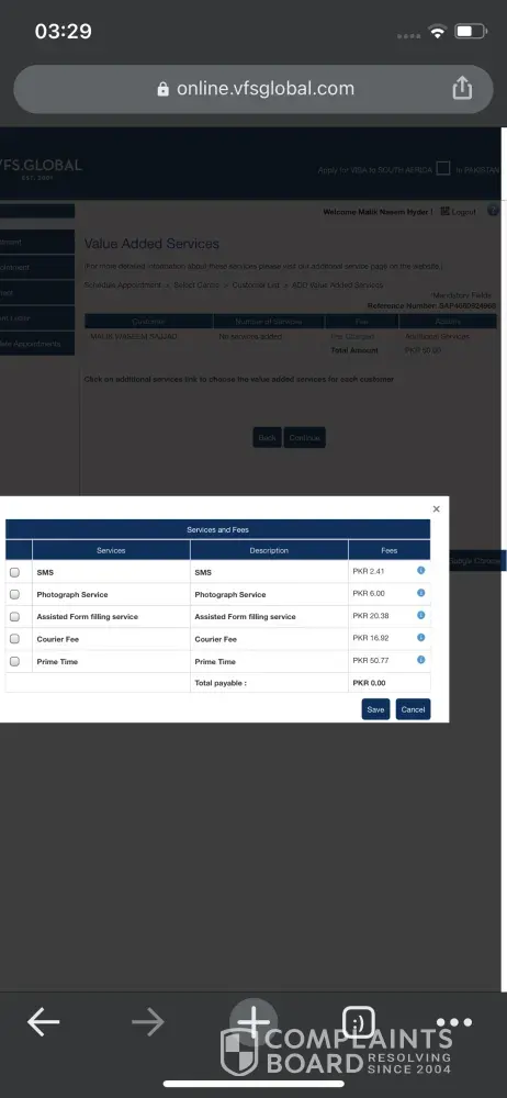 While booking an appointment to submit a visa application at Pakistan for South Africa, booking portal shows an appointment fee of PKR-50 but upon payment though credit/debit card they deduct USD-50 which is a huge difference and they charge hell a lot more.