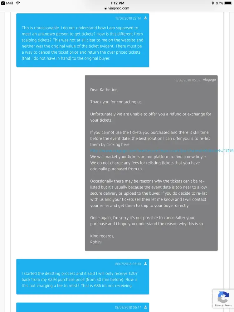 However, Viagogo support repeats to write that the tickets are valid and it is no problem to enter the concert.