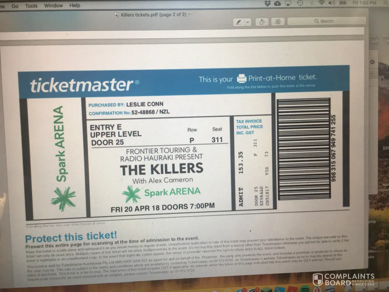 Bought tickets from viagogo for the killer's tickets on the 20th of April.