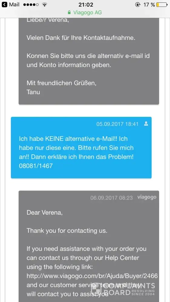 E-Mail-Adresse des Verkäufers: [protected]@viagogo.co.uk