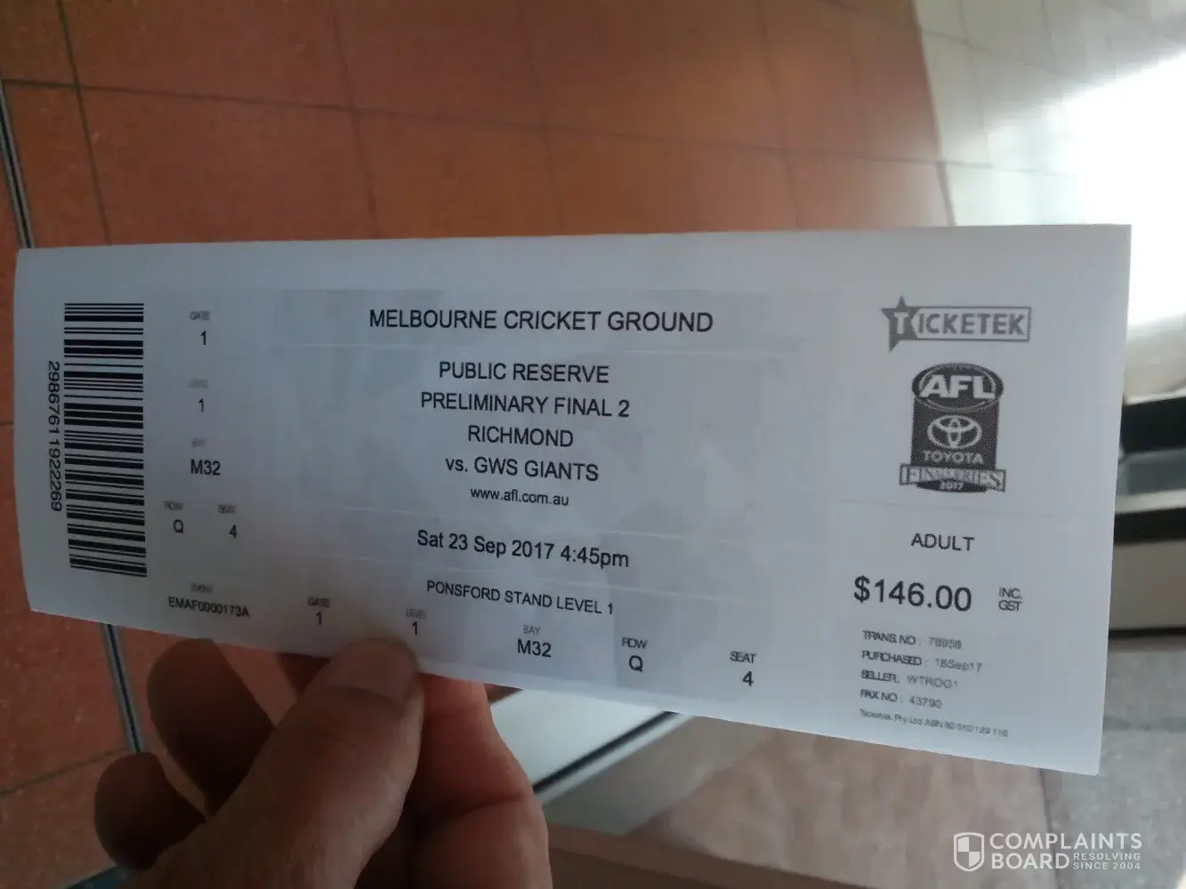I bought 1 ticket for prelimfinal Richmond v gws.your price on site was $264 plus fees for a total of $325.80 which I paid for .when I downloaded the ticket and printed it I was shocked to see on the ticket the value of the ticket which is $146.this is elligal and sculping what your doing and everyone that was sitting with me only paid $146.I would like the balance of difference refunded to me or given a free grand final ticket sitting with the Richmond cheersquad.I will be taking this further to ACCC if I don't get a response.my mobile number is [protected].my email address is [protected]@dodo.com.au regards Albert.