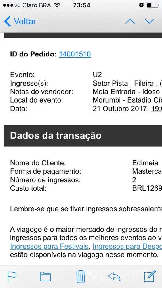 I tried to email the following to Viagogo but it appears they have shutdown this email server. We put in a complaint to ACCC Australian Consumer Complaints Commission when we originally found out we had been conned by purchasing a $66 ticket but paying $A460. Absolute rip off. Then the concert was postponed anyway so we are trying to get a full refund but can no longer email them.