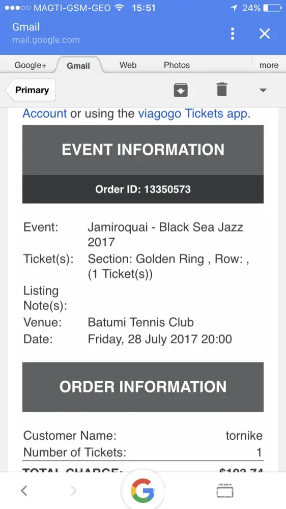 I purchased one ticket for jamiroquai concert which took place in Batumi on Jazz festival