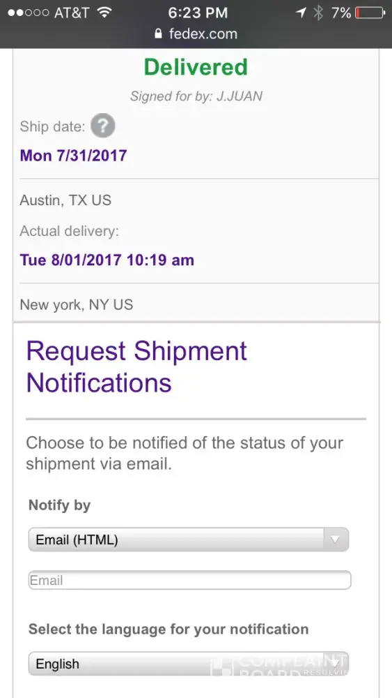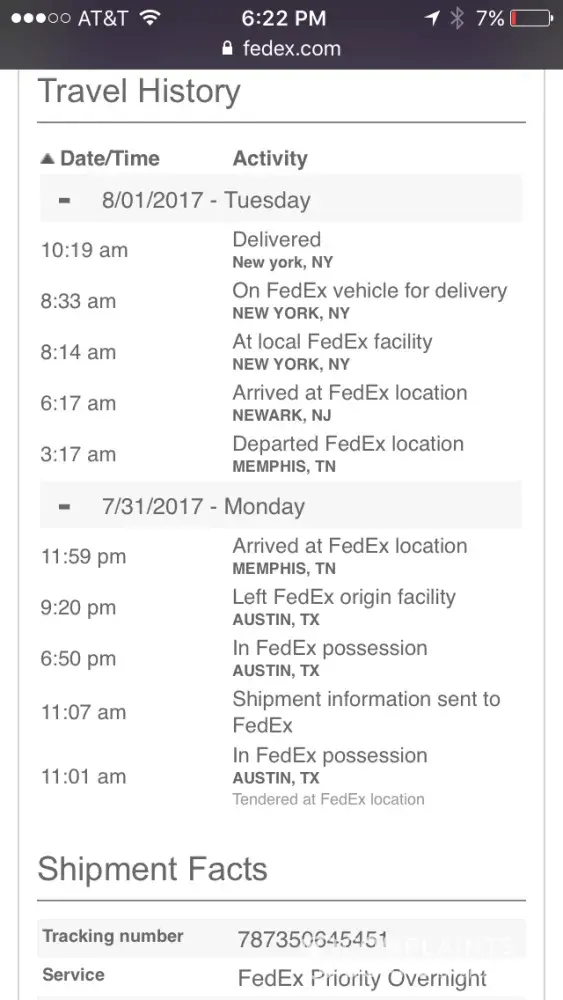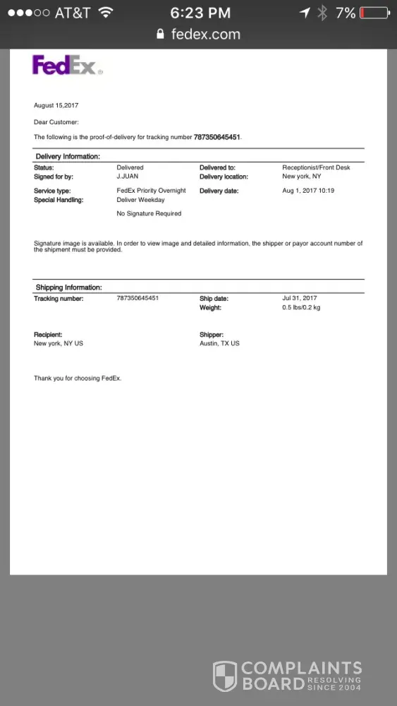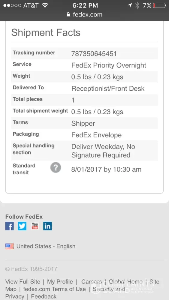 I federal expressed on 7/31/17 and per tracking number confirmed that Viagogo receptionist signed in as received on 8/1/17.
