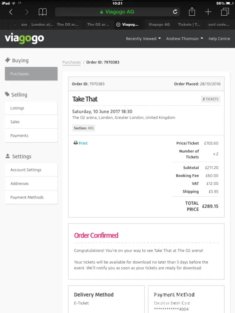 If I do not receive contact from viagogo I will look to take this matter further and take it to ombudsman of fair trading.