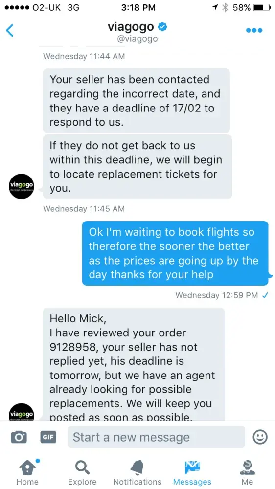 I am not happy one bit I would like my money back as soon as possible you told me you would sort my tickets or a refund out by 17/02 low and behold your staff have stopped responding to my messages I find this highly irritating that you would do such a thing it is totally wrong It clearly states on your site that if you can't sort the tickets you offer a full refund!
