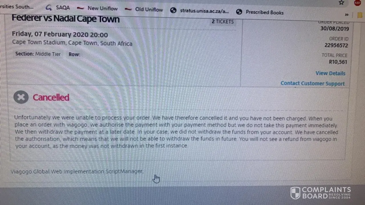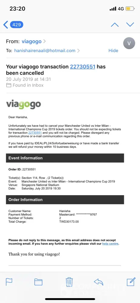 Viagogo fraud - request for costs return - viagogo uk order [protected]