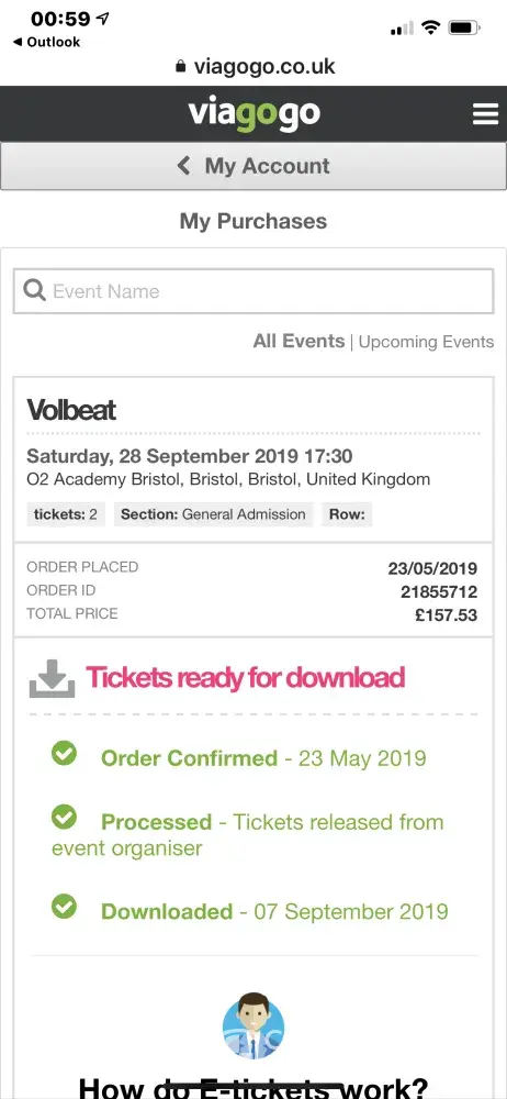 I have recently purchased a ticket from from your company viagogo (ref. number: xxx) to attend Isle of Wight Festival to see George Ezra. I paid £ for the ticket and received the confirmation of that booking and was able to download my ticket too from yourwebsite.