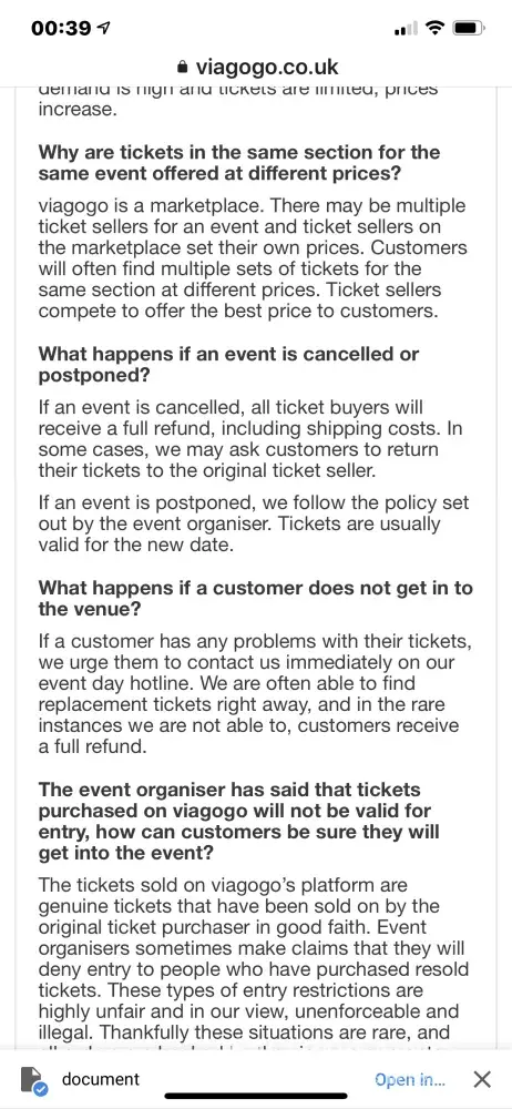 I have contacted viagogo straight away who simply apologised and said they understand my frustration. How can you understand it or can you? It means that it happens a lot that you cheat on people like this? Unfortunately for you, I am not one of the peoplewho will let it go easily like this. I know how this company works known some people working there but resigned years ago. I have trusted that this has now changed. Obviously not.