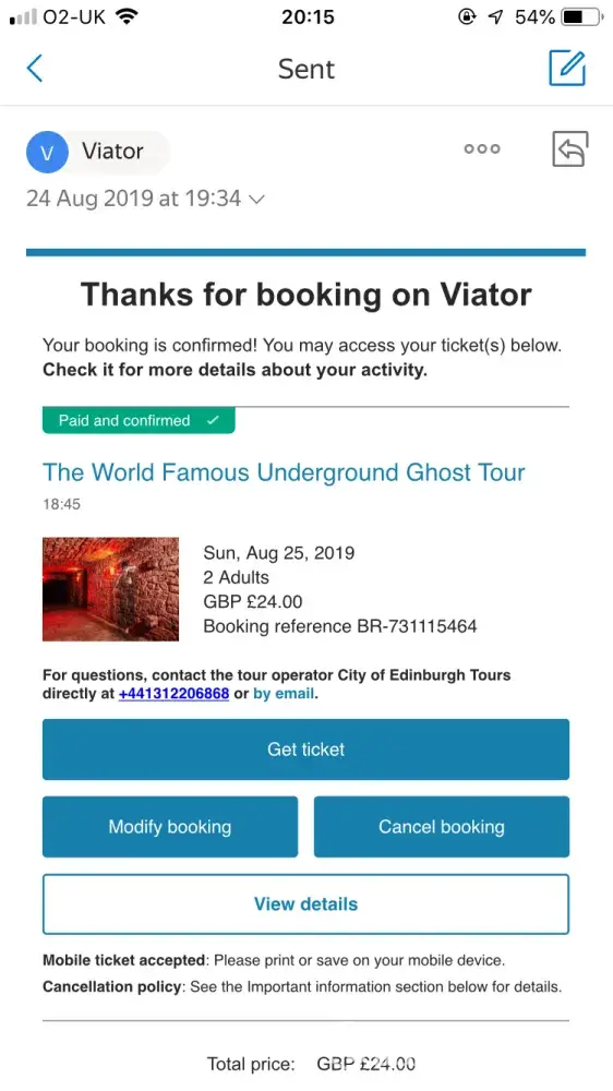 On Wednesday the 14th of August I booked through Viator 5 tickets for Mary Kings Close Edinburgh for 4pm. the cost for this was £82.50.