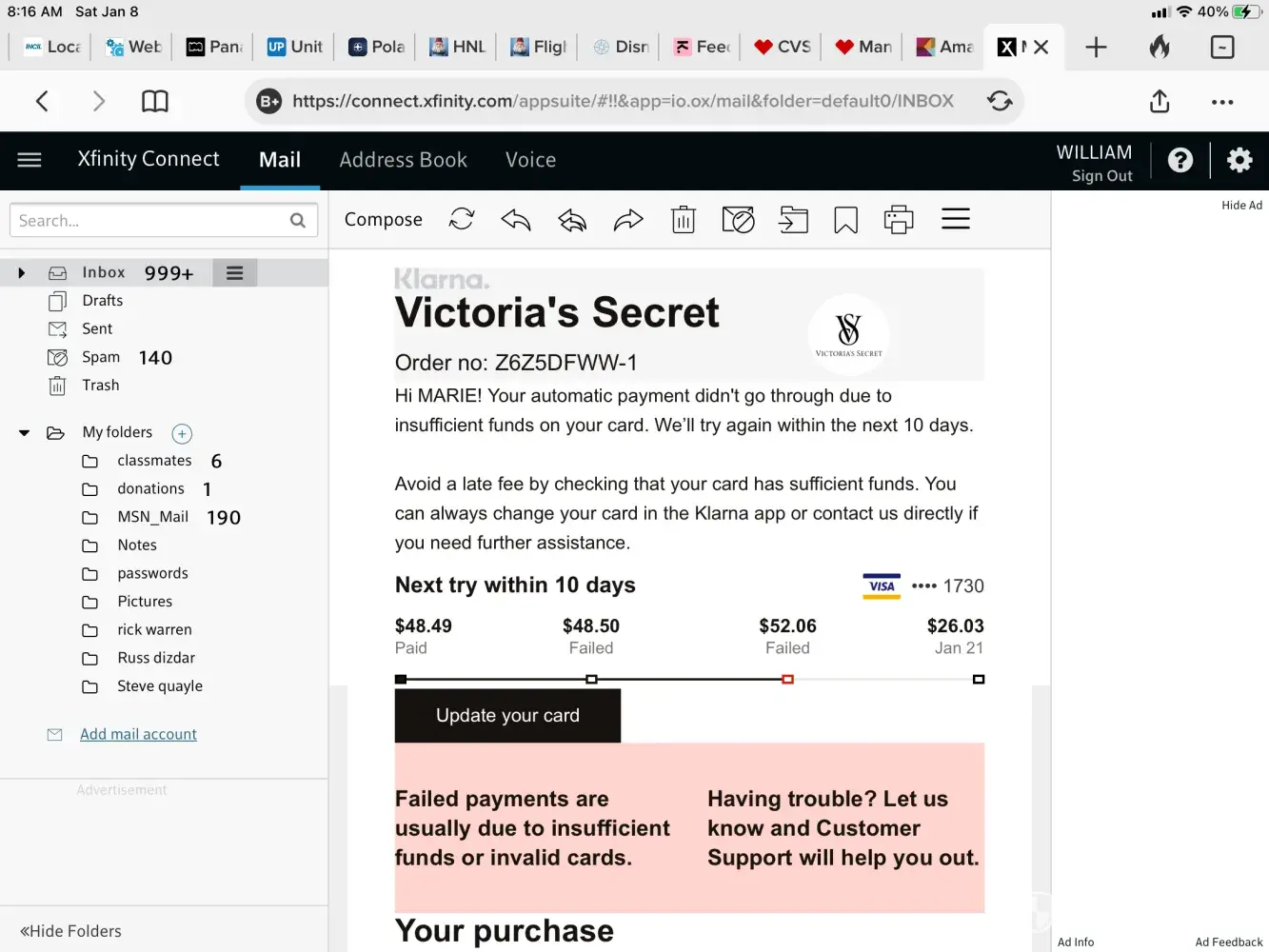All of which have gone unanswered to this day. EXCEPT I Keep receiving bills...for items I never have owned from Victoria Secret.