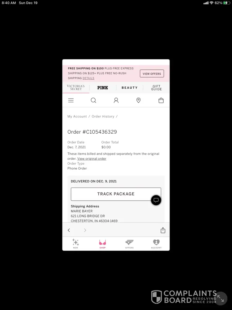 And since I returned everything, how could I possibly be billed for anything I did not even own from Victoria's Secret. I called to complain, dispute the charges and CLOSE MY ACCOUNT!