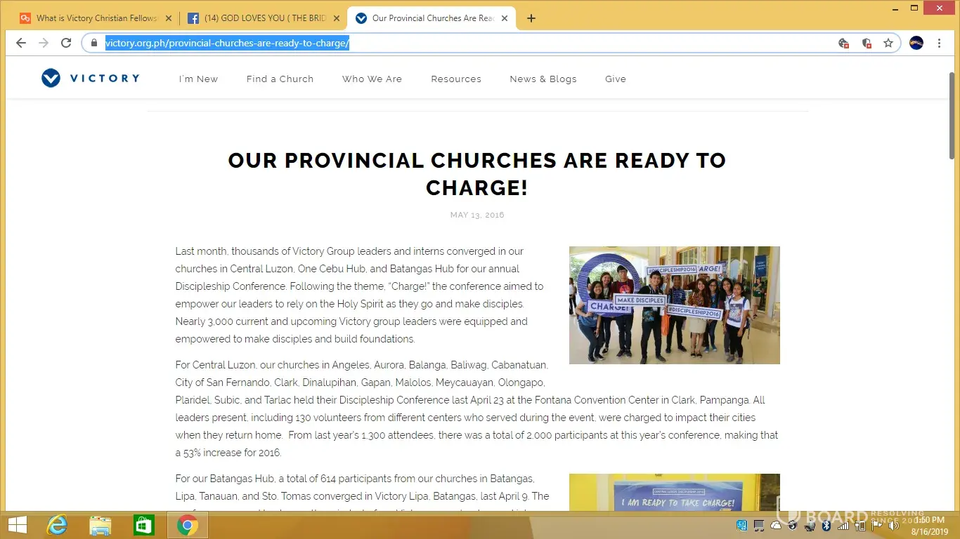 Victory Pioneer pinalayas noong February 2019 sa Robinsons Pioneer at di rinenew ang contrata nila na magrent ng place doon kasi ang daming church members nagreklamo na pera pera lamang ang ministry... the church has changed place to Victory Pasig Estancia... and another church branch ng Victory Mandaluyong was established... maraming alumni ang Jesus Christ King of kings and Lord of lords Academy ang naging member dito at naging VG Leader... I am praying for them...kawawa sila wala na silang mapuntahang ibang church pero may kaunting VG Leader dito matino... Victory Makati okay okay pa ang kultura nila...nagkumpulan sa church branch ng Victory Makati si Pastor Dennis Sy at iba pa... ewan ko ang exact reason... but Pastor Neil Germo lost ECE graduate... naaawa ako sa kanya... scam na nga ang Board Exam at Civil Service Law sa Pilipinas because of corruption at kurap ang church namin... naaawa sa kanya... Miss Sheena Andarino Bautista the 7th HS Valedictorian ng JCKL Academy... 17 yrs old pa lang narecruit na sa kulto namin... binalaan ko sya sa pm... nagresign din sya as accounting staff ng VCF Fort...other alumni ng JCKL Academy at staff ng Victory Makati pinalipat ng VCF Fort... maybe to teach those corrupt church leaders sa VCF Fort...