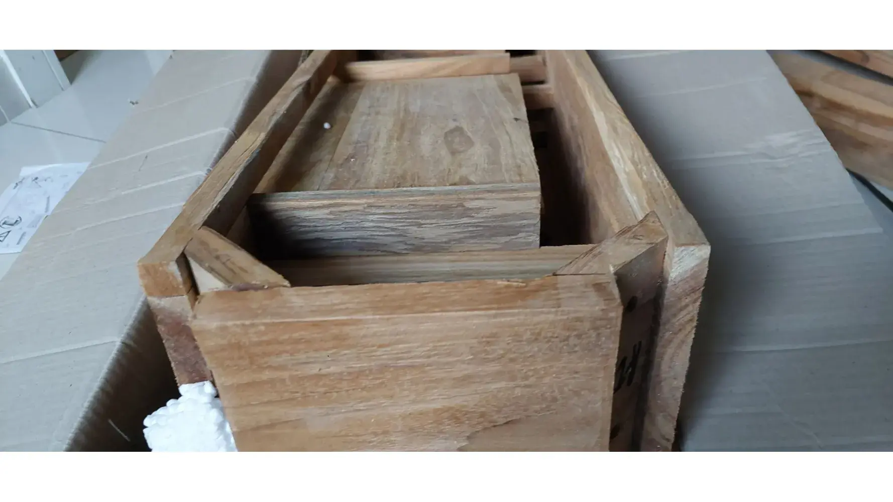 I tried calling them again, but they only answer during really limited hours, which is tough for me because I work. When I finally got the boxes open, I found that the beds themselves were damaged too. I took pictures of that too, but since I couldn't get in touch with the company, I had to try to fix them myself. It was a real pain.
