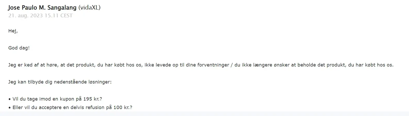 2. we are sorry, would you like a voucher of 100dkk (less than a tenth of what I paid) as compensation. I replied, that I wanted either full refund or the sink I ordered and paid for)