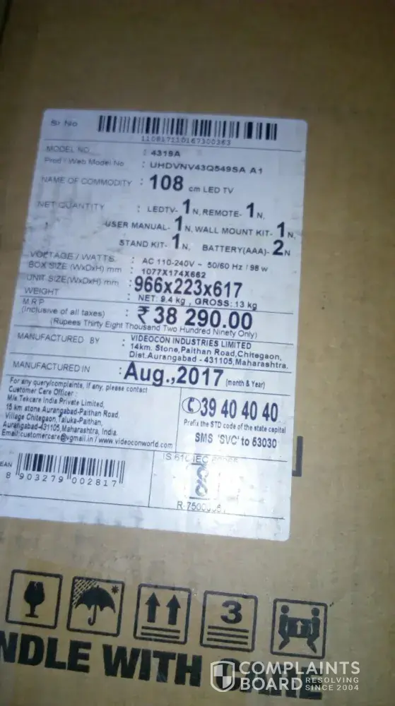 So dear I want to inform you before taking action against videocon. I will give this article in all leading newspapers and Iam forwarding this case to consumer court, be ready for that, otherwise it will spoil your company’s name and fame. Else replace MY TV.