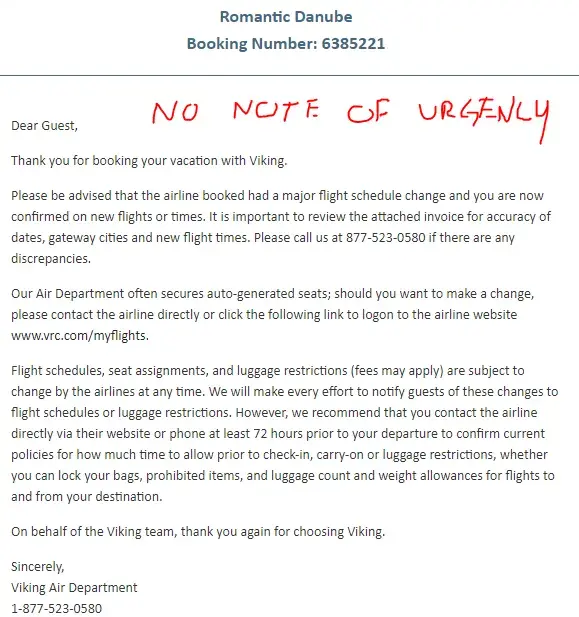 I subsequently cancelled the cruise and have a credit for some other time (and actually not really looking forward to dealing with Viking again...) It is pretty obvious that Viking have no customer service skills, and really don't care about their customers...