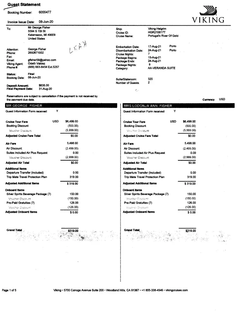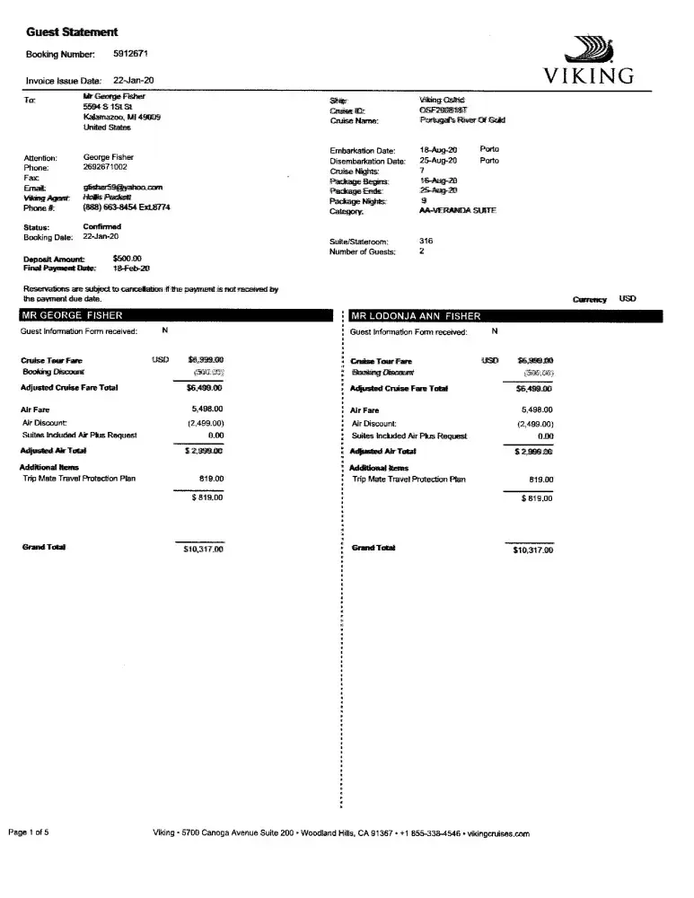 We would not have booked this trip, or our trip for next summer, had Viking been honest about its intentions. Viking fraudulently procured our booking and is refusing to address its actions.