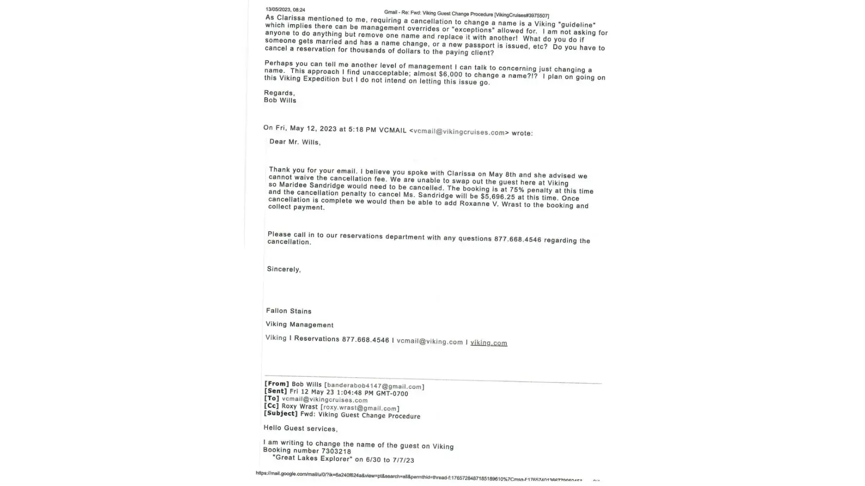 I booked a Viking "Great Lakes Explorer" Cruise about 2/17/23 and paid in full the $14,855.38 by 24 March 2023. This cruise is to take place 6/30/23 thru 7/7/2023. Viking Booking number 7303218.