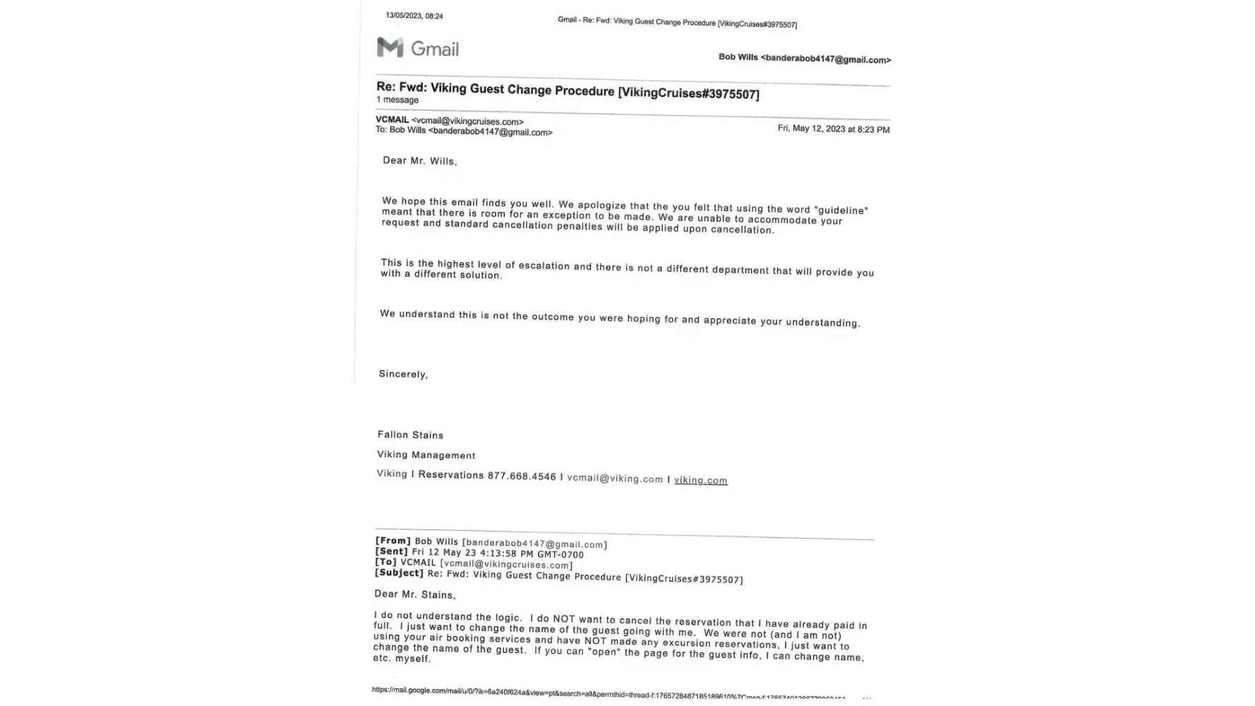 1. Why despite filing a Transfer Request Form and numerous emails, including to the rep who handled our trip reservation, did we not receive any communication from Viking?