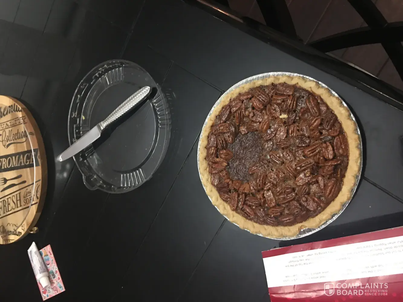 Purchased a pie from Village Inn in Omaha Nebraska 132nd street. Was very disappointed when I opened the pie and saw an entire space without pecans. When purchasing a pie it would be nice to have the entire pie have pecans. Not the first time this has happened just hate the disappointment.