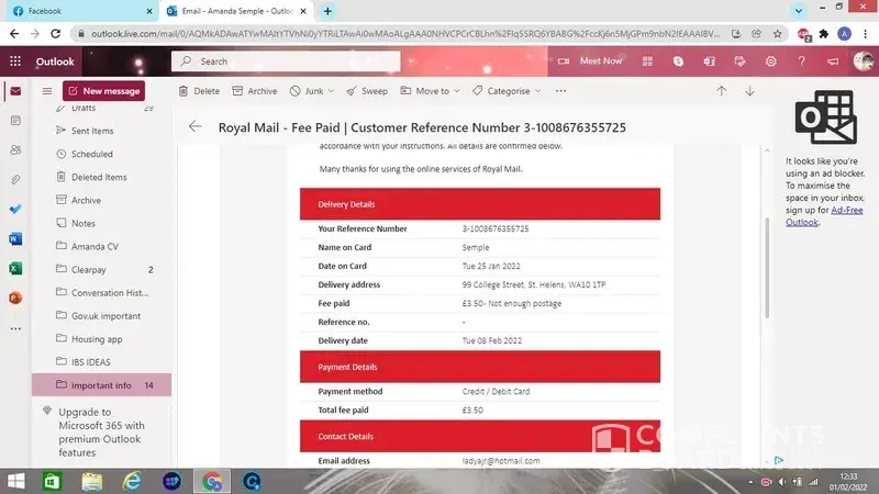 On her return on the 26/02/2022, the parcel was defiantly not at her collection point, but other parcels where.