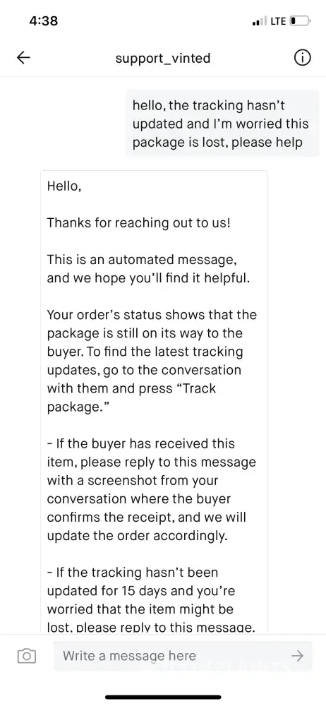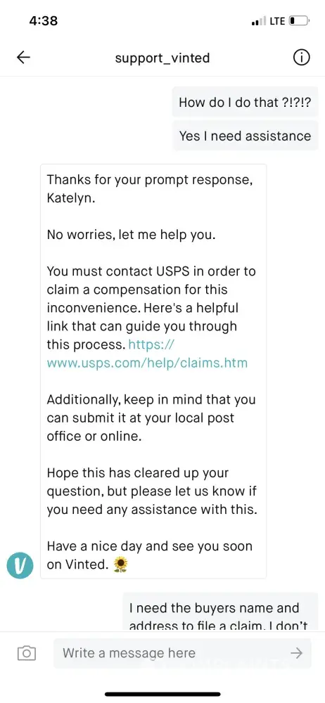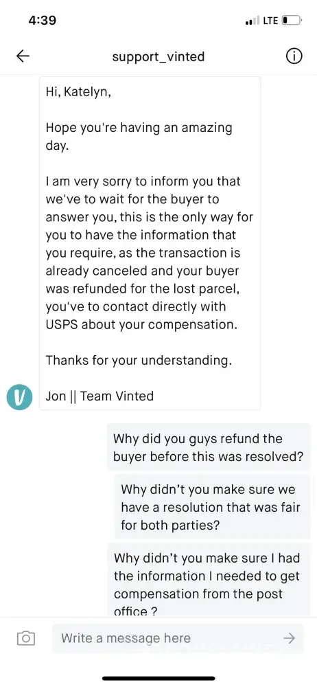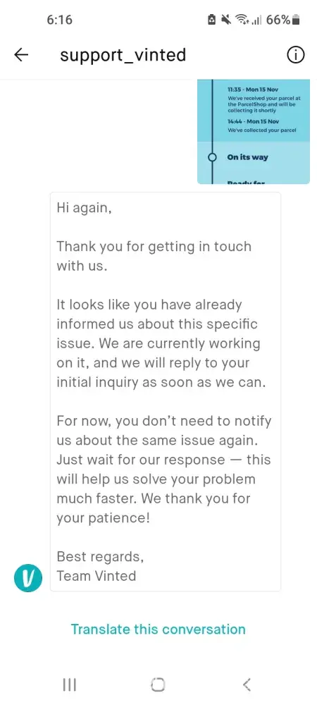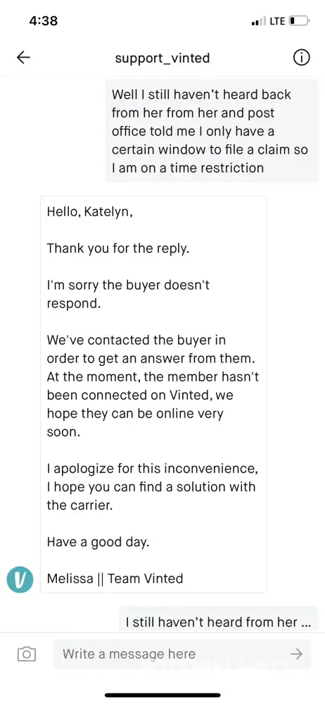 Vinted Not replying to messages about a lost parcel