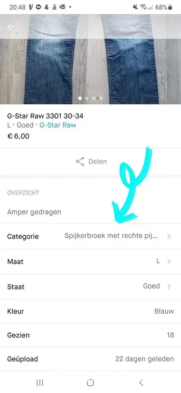 The seller replied in Dutch and told me that he classified the pants as a straight fit in Dutch on the app of his smartphone.