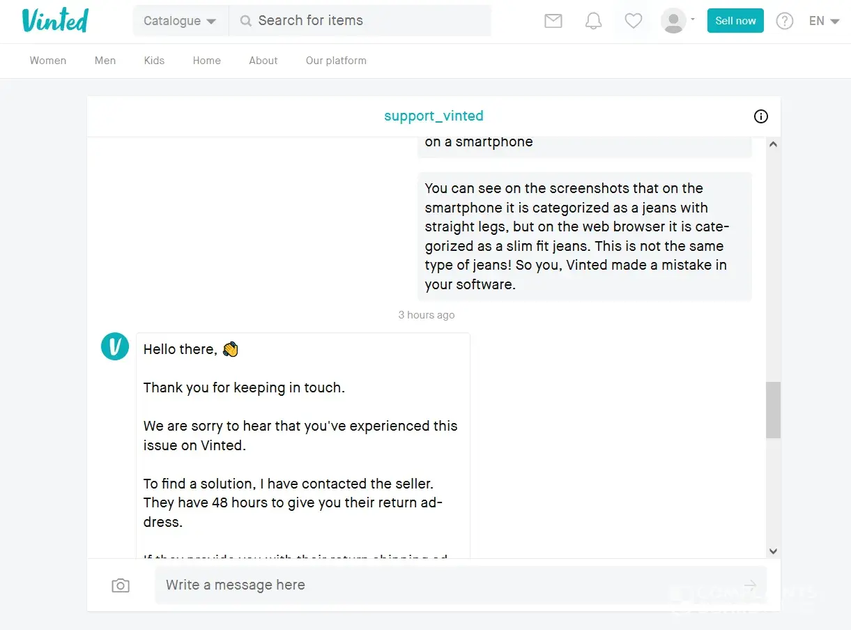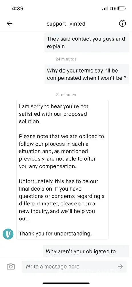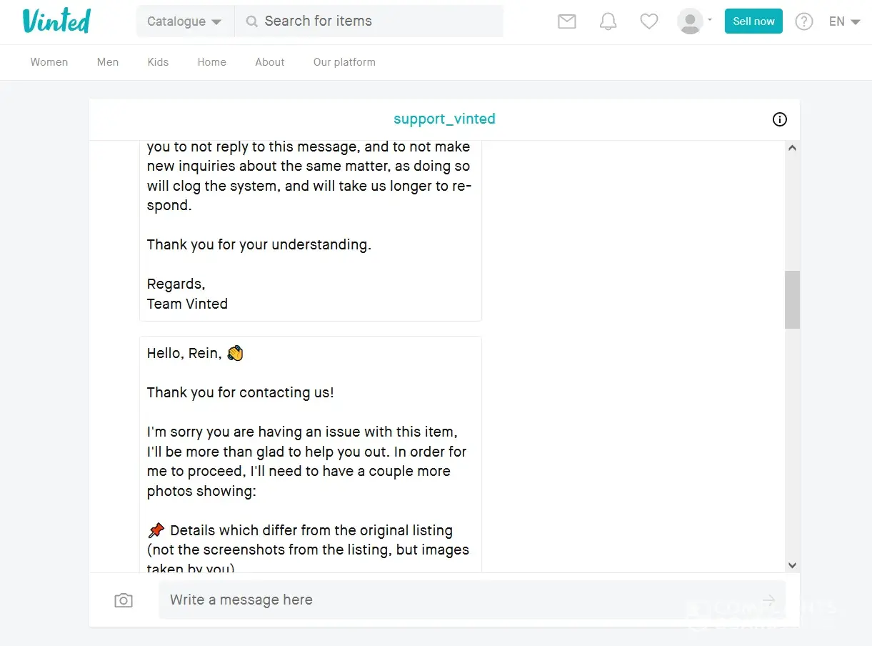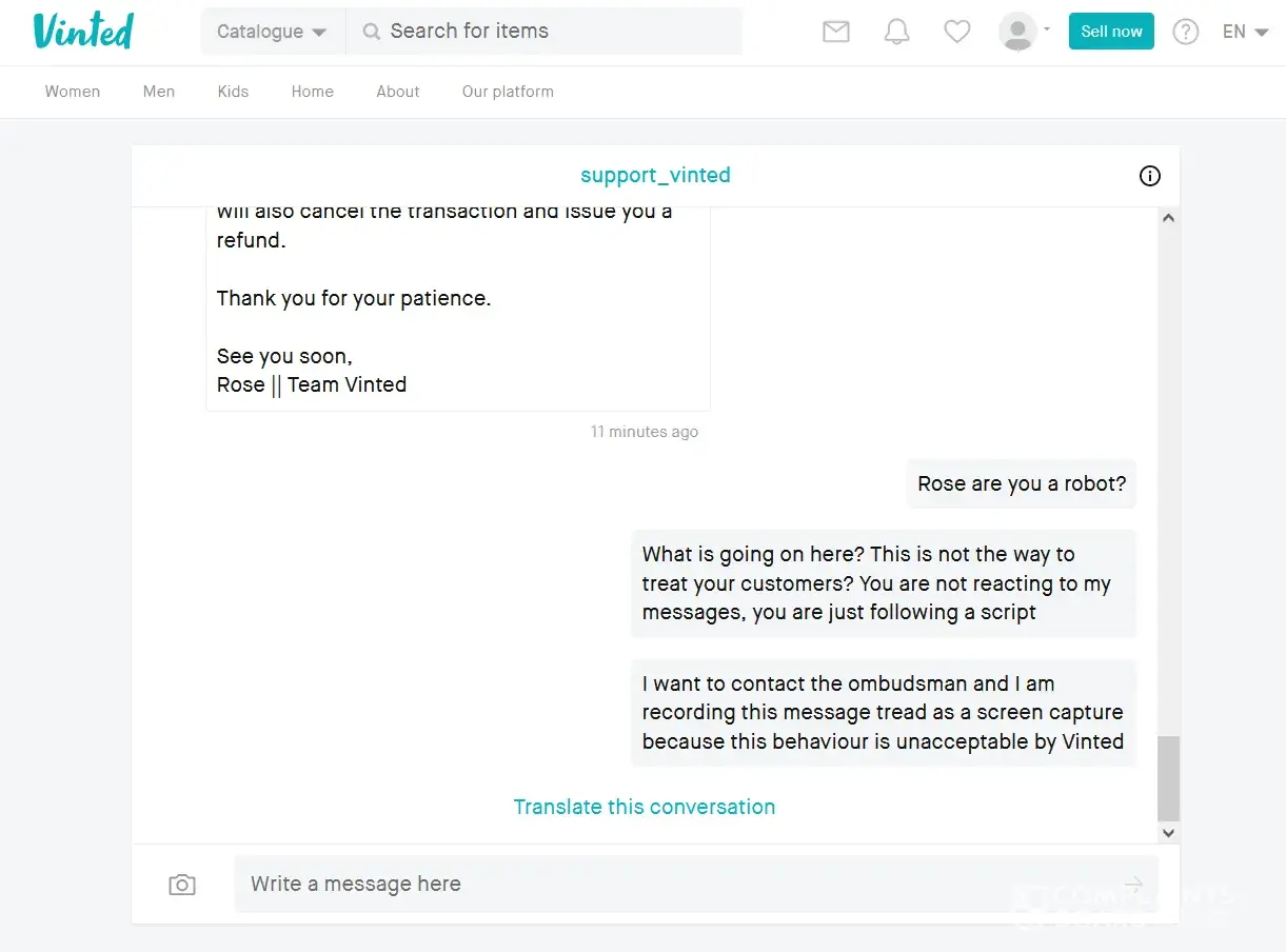 Vinted Vinted doesn't react to my compliant and gives non-human replies