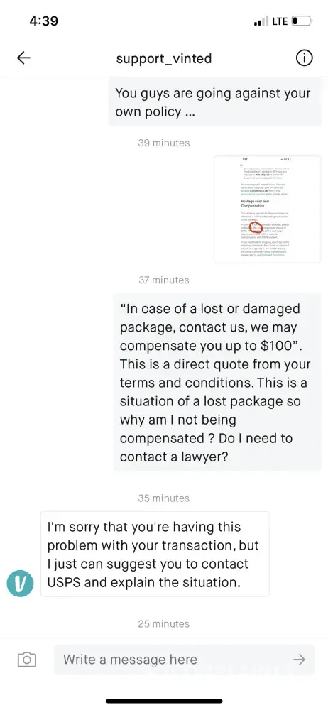 I have informed vinted about a lost parcel that i posted on 15th November and they not replying to me about compensate as the item was worth 45 pounds. I have proof of messages and tracking information as well, they just leave automatic replies and not get back to me i tried to 4 times to get a reply from them, the parcel was size 3 boots worth 45 pounds.