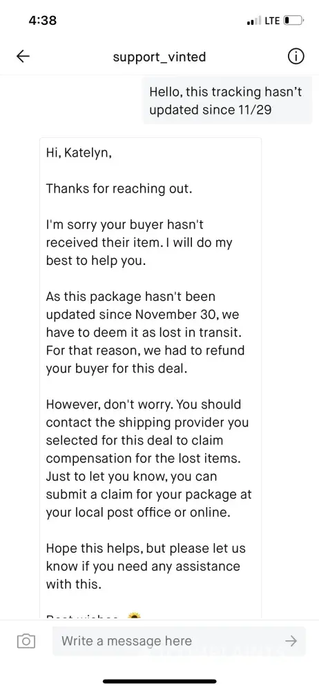 Vinted Lost package / loss of sale