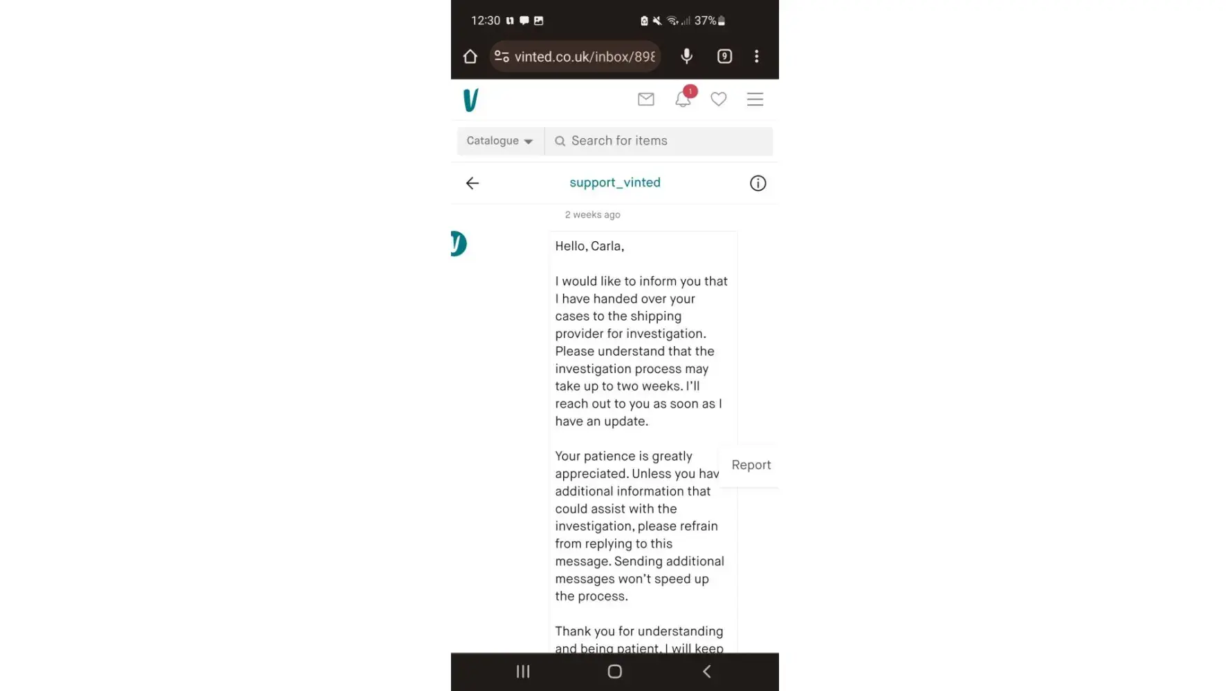 I hope this message finds you well. I am writing to provide you with an update on a complaint I previously filed against Vinted for their unacceptable handling of a recent purchase.