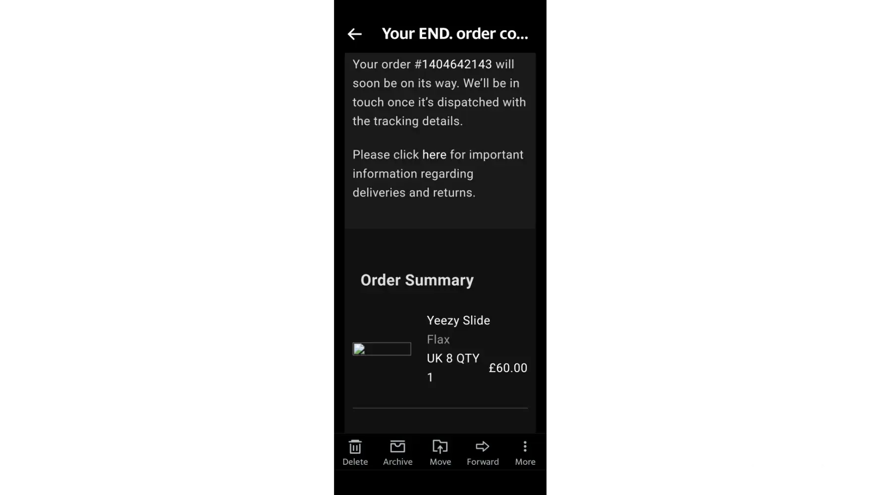 I logged on the next day to see if there had been any views only to find that my account had been definitively blocked and I had been accused of selling counterfeit goods. I was shocked and very upset to have been accused of this without any attempt to get any further information from me. I replied to this message, sending screen shots of the emails showing me winning the raffle to purchase the items as well as a copy of the order email itself to show proof of legitimate purchase. Your team then contacted me asking me to send a photo of the inner size label placed inside of the Yeezy slide or on the shoes soles / insoles. If anyone replying knew anything about Yeezy slides they would know that such things do not exist. There are no labels inside them as they are waterproof items and therefore are a solid piece of rubber. I had already provided pictures of the soles of the slides in my original listing. The only thing included inside the slide is an imprint stating "Yeezy, Made in China, [protected]@US (I have attempted to take a picture of this but it is almost impossible as a phone wont fit in to the slider).