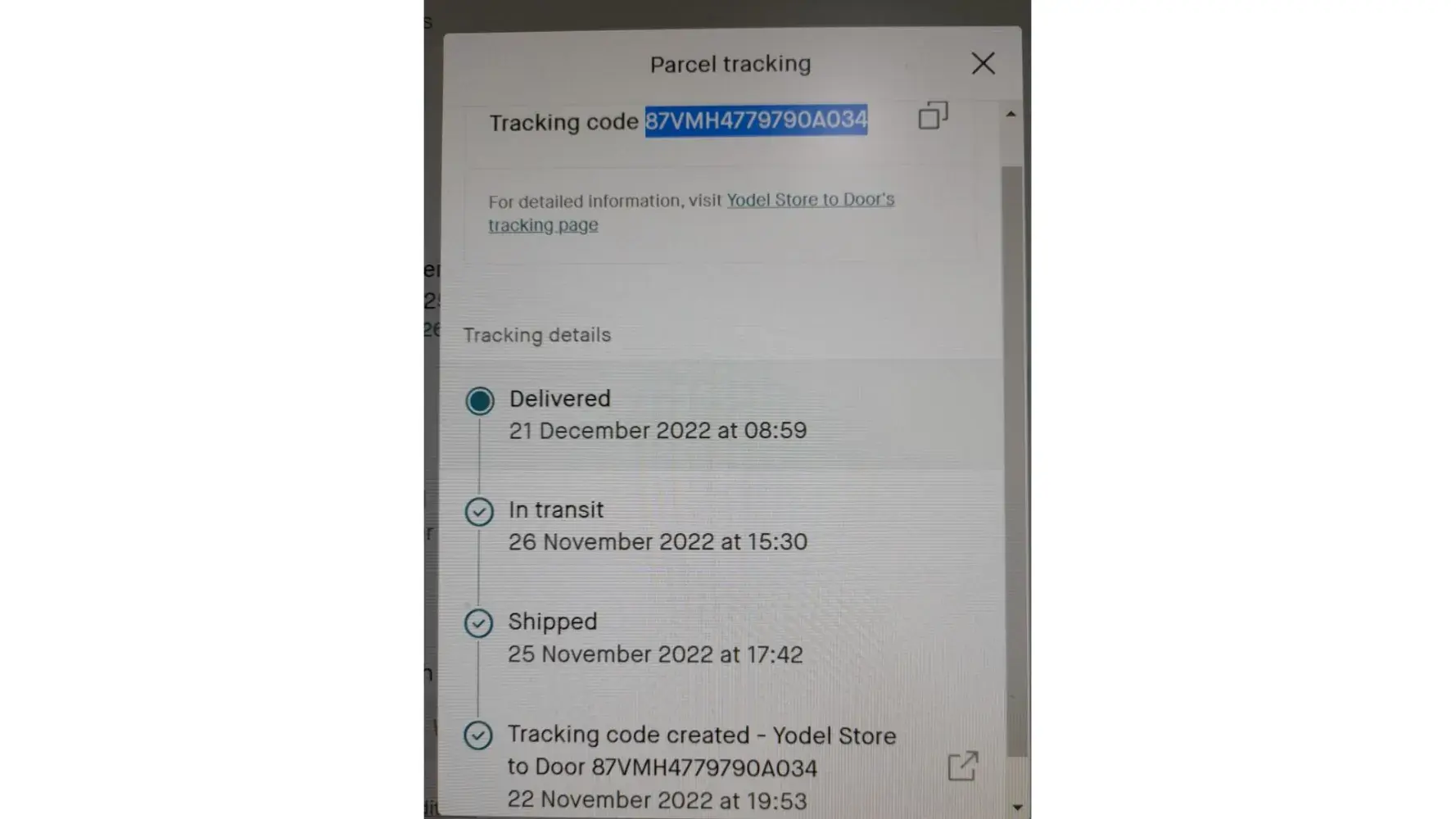 Despite chasing the seller up, the item had still not arrived before I left the country on 1st December 2022.