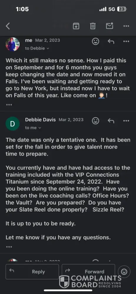 Then she said I had to pay something around $750 for an event held in August. She said big entertainment record labels attend this event looking for talent and that I could perform and network. Red flag number 3: she refused to give me any names of these "promised" record labels and people in attendance. We also discussed a payment plan after I mentioned I only had $70 on me at the time. She said I had to pay $100 today in order to go any further, which was RED FLAG NUMBER 4. No real company will demand an immediate payment. They will allow you to take the contract home for a few days to look over it and review it with your lawyer, but not VIP Talent Connect, because they're a scam. So she took my $70 in cash and demanded I give her my debit card for the other $30. After I did that, I signed the contract AND THEN she told me I had only 7 days to pay the full $750 or whatever ridiculous price it was. My stomach dropped. I felt tricked, but she seemed unconcerned about what she had just done. Immediately after paying, she said goodbye and pushed me out of the office. There was no further information provided, no handshake, no connection established. She was cold, firm, and definitely a scam artist. I left feeling sick and started crying. I called my parents and explained what happened and that's when we found something on the contract where it said we had 24 hours to cancel via phone or email. Of course, NO ONE answers the phone. I don't remember how exactly I got out of the contract, but I did that day.